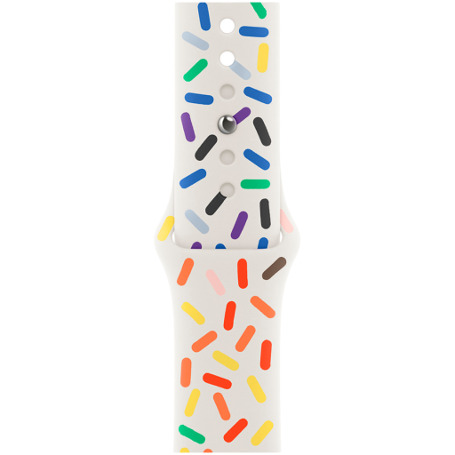 Featuring a joyful design, the Pride Edition Sport Band incorporates a full range of vibrant colours to celebrate the beauty and diversity of the LGBTQ+ community. In addition to the colours of the core Pride flag, black and brown symbolise marginalised LGBTQ+ communities of colour, as well as those impacted by HIV/AIDS. Light blue, pink and white honour trans and non-binary people.