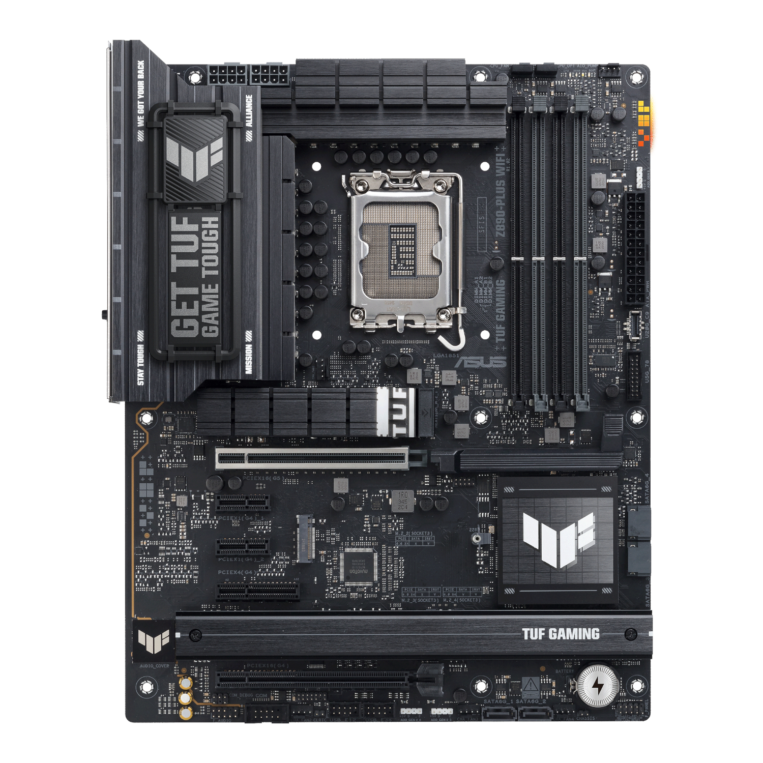 The ASUS TUF GAMING Z890-PLUS WIFI takes all the essential elements of the latest Intel® Core™ Ultra Processors (Series 2) processors and combines them with game-ready features and proven durability.