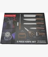 Casey Evryealth 8 Piece Knife Set EVRYEALTH 8pc Knife Set - 8 inch side knife, 8 inch Chef Knife, 8 inch Meat Cleaver, 3.5 inch Peel knife, Melon planer, Scissors, Meat claws, knife Sharpening rod Availability: In stock SKU: CSY9154-5 R222,88 Qty: Add to cart Ship to Select country South Africa * Other * Shipping Method Name Estimated Delivery Price No shipping options Apply Custom wishlist OK Add to wishlist Add to compare list Email a friend EVRYEALTH 8pc Knife Set - 8 inch side knife, 8 inch Chef Knife, 8 inch Meat Cleaver, 3.5 inch Peel knife, Melon planer, Scissors, Meat claws, knife Sharpening rod