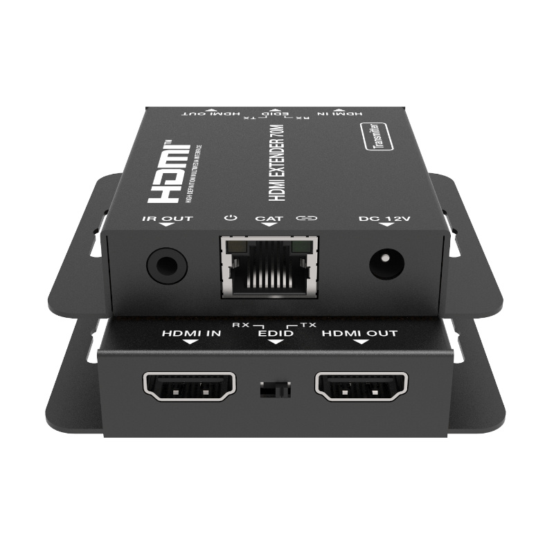 HDCVT HDMI1.4 70m Extender with IRThe HDCVT HDMI Extender with IR Control can extend your high definition video/audio signal and IR control signal up to 70m for 1080p resolution, and up to 40m for 4K30 resolution via a single CAT6 cable.Manufacturer: HDCVT Availability: 271 in stockSKU: HDC-ED970C R673,62 Qty: Add to cart Ship toSelect countrySouth Africa *Other *Shipping MethodNameEstimated DeliveryPriceNo shipping optionsApply Custom wishlist OKAdd to wishlistAdd to compare listEmail a friendThe HDCVT HDMI Extender with IR Control can extend your high definition video/audio signal and IR control signal up to 70m for 1080p resolution, and up to 40m for 4K30 resolution via a single CAT6 cable. The high-quality construction allows you to achieve zero delays, as well as uncompressed long-distance transmission between the transmitter and receiver. This extender with HDMI loop output can also be cascaded to the next extender, supporting resolutions of up to 4K @ 30Hz. For additional versatility, it supports the EDID copy function as well (you can choose local or remote EDID). To top it all off it also supports high-quality audio formats like PCM7.1, Dolby True HD, DTS HD. This product can be widely used in multimedia conference halls, TV teaching or with large-screen displays.FEATURES:HDMI 1.4, HDCP 1.4 and DVI 1.0 CompliantSupport Video Resolution up to 4K2K@30Hz YUV 4:4:4CAT6: 230ft/70m for 1080p, 131ft/40m for 4K30CAT5E: 197ft/60m for 1080p, 115ft/35m for 4K30Support Copying EDID from Receiver Display or Loop Out DisplayAllow for Cascading via additional HDMI loop out portSupport one-way POC functionality (from transmitter to receiver)One-way IR signal transmissionSPECIFICATIONS:HDMI Compliance: HDMI 1.4HDCP Compliance: HDCP 1.4Video Bandwidth: 10.2GbpsVideo Resolution: Up to 4K@30HzAudio Support Up to 7.1CH HD audioInput TMDS Signal: 3.3 voltsInput DDC Signal: 5.0 volts/P-PESD ProtectionHuman Body model:+/- 8 kV (air-gap discharge)+/- 4 kV (contact discharge)Transmitter:Input:1 x HDMI Type A [19-pin female]Output:1 x HDMI Type A [19-pin female]1 x IR OUT [3.5mm Stereo Mini-jack]1 x CAT OUT [RJ45, 8-pin female]Receiver:Inputs:1x IR IN [3.5mm Stereo Mini-jack]1x CAT IN [RJ45, 8-pin female]Output:1x HDMI Type A [19-pin female]Housing: Metal EnclosureColour: BlackPower Supply 12V/1A DCPower ConsumptionTransmitter: 1.86WReceiver: 0.87WProduct Dimensions: 7.9 x 6.9 x 1.7 cmWeight:Transmitter: 132gReceiver: 130gWHAT'S IN THE BOX:HDCVT HDMI 70M Extender Receiver x1HDCVT HDMI 70M Extender Transmitter x1IR Blaster Cable x1IR Receiver Cable x112V/1A DC Power Adapter x1User Manual x1