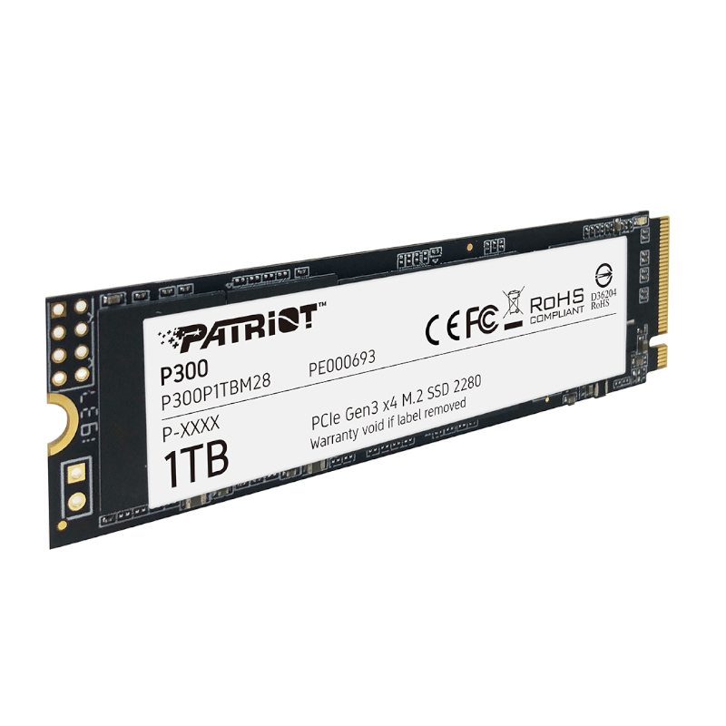 Patriot P300 1TB M.2 PCIe NVMe SSD Boost your computer’s performance with quicker application loading times while transferring heavy workloads with the Patriot P300 1TB M.2 PCIe NVMe SSD. It features a high-speed PCIe NVMe interface, 1TB capacity, a 2280 M.2 form factor, HMB technology and NANDXtend ECC technology. Manufacturer: Patriot Availability: In stock SKU: P300P1TBM28 R3 318,56 Qty: Add to cart Ship to Select country South Africa * Other * Shipping Method Name Estimated Delivery Price No shipping options Apply Custom wishlist OK Add to wishlist Add to compare list Email a friend The P300 is Patriot’s next generation of mid-tier PCIe gen 3x4 NVMe SSD to hit the market, offering 25% higher transfer speeds and IOPs than standard PCIe 3x2 solutions. The compact m.2 form factor is designed for easy installation and will fit into any PC or laptop, while its low power consumption helps extend laptop battery life. The P300 is guaranteed to improve start-up, loading, and transfer times over traditional hard disk drives. The P300’s advanced firmware offers ECC technology and end-to-end data path protection to ensure data integrity throughout the life of the drive. Advanced wear-levelling and thermal management features extend the life of the drive for maximum use. FEATURES: High-speed PCIe NVMe SSD 1TB Capacity Built with the latest PCIe 3 x 4 controller 2280 M.2 PCIe Gen3 x 4, NVMe 1.3 HMB technology NANDXtend ECC technology SPECIFICATIONS: Type: M.2 PCIe NVMe SSD Capacity: 1TB Power Consumption: Full: 2.07W Idle: 0.37W TBW: 320TB 4K Aligned Random Read: up to 290K IOPs 4K Aligned Random Write: up to 260K IOPs Sequential Read (ATTO): up to 2,100MB/s Sequential Write (ATTO): up to 1,650MB/s Sequential Read (CDM): up to 2,100MB/s Sequential Write (CDM): up to 1,650MB/s O/S Supported: Windows® 7*/8.0*/8.1/10 (*May require drivers) Dimensions: 8 x 2.2 x 0.38 cm Weight: 9 g WHAT'S IN THE BOX: Patriot P300 1TB M.2 PCIe NVMe SSD x1