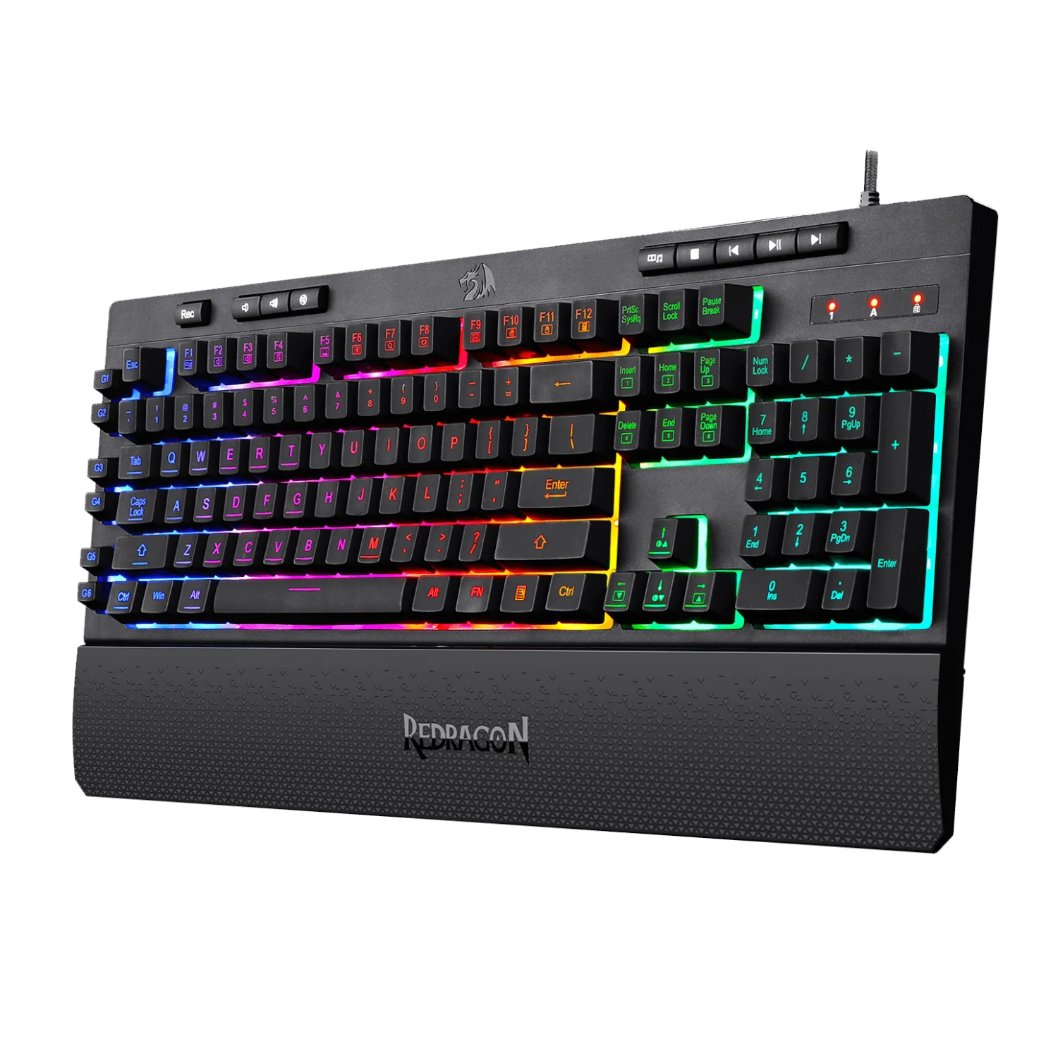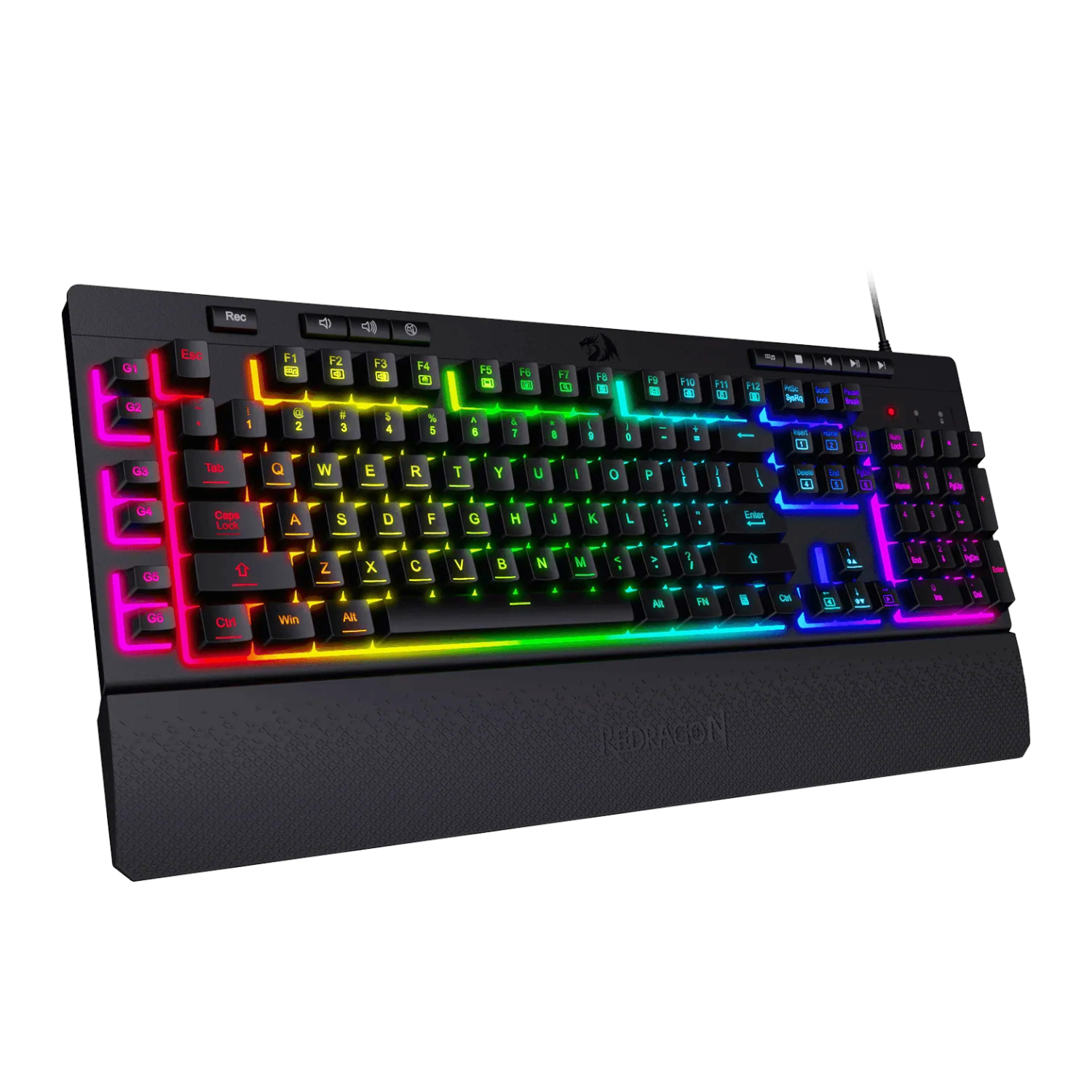 REDRAGON KB MEMB SHIVA BKExperience the tactile feedback of a mechanical keyboard without the loud actuation of each keypress with the Redragon SHIVA K512 Membrane RGB Gaming Keyboard.Manufacturer: Redragon Availability: 11 in stockSKU: RD-K512RGB-1 R376,10 Qty: Add to cart Ship toSelect countrySouth Africa *Other *Shipping MethodNameEstimated DeliveryPriceNo shipping optionsApply Custom wishlist OKAdd to wishlistAdd to compare listEmail a friendExperience the tactile feedback of a mechanical keyboard without the loud actuation of each keypress with the Redragon SHIVA K512 Membrane RGB Gaming Keyboard. Its full 104-Key QWERTY layout doesn’t take anything away from a standard keyboard, however, it does allow for 26 conflict-free key presses and features an extra 9 multimedia keys and 6 macro keys for your enjoyment.It’s RGB lighting has 7 pre-set backlight patterns and 6 customized modes which can be changed with a button combination. This keyboard allows at most 26 keys to work simultaneously to provide fast as well as accurate game response. This keyboard’s bevel is host to unique and smooth lighting which runs around the keyboard’s edges. Ergonomically designed with a detachable wrist-rest section connected by magnets, the wrist-rest offers great support to make use more comfortable.FEATURES:Full 104-key QWERTY layoutHybrid membrane keys with a quiet mechanical feel26 Conflict-free keys9 Multimedia and 6 Macro keysErgonomic design with detachable wrist rest7 pre-set RGB backlight patterns and 6 customized modesSPECIFICATIONS:Layout: QWERTY 104-KeyMultimedia keys: 9Macro keys: 6Wrist/Palm rest: Magnetic detachableConnection: USB 2.0Keycaps: Double-Shot InjectionDimensions: 46.4 x 21.3 x 4 cmWeight: 932.6 gWHAT’S IN THE BOX:Redragon SHIVA K512 104-Key Membrane RGB Gaming Keyboard – Black x1Detachable Wrist Rest x1User Guide x1