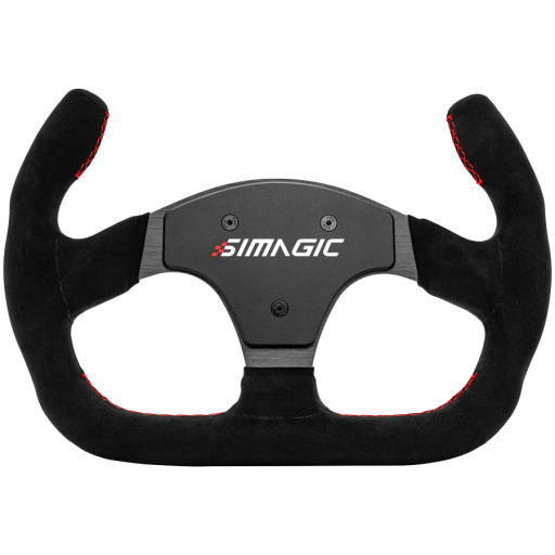 The Simagic P-325C is a high-quality simracing steering wheel made of Alcantara and CNC aluminum alloy. It is characterized by its wear-resistant, sweat-resistant surface and a comfortable non-slip grip. With a diameter of 320 mm and a mounting system with M5 countersunk screws, it is ideal for demanding racing simulations.
