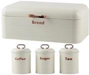Totally 4-Piece Breadbin and Canister Tin Set Combo White Totally 4 Piece Retro Breadbin And Canister Tin Set Combo - Includes Breadbin And Matching Sugar, Coffee, Tea Canister Tins Colour White, Adds Elegance And Glamour To Your Kitchen Worktop, With Handle on Breadbin For Easy Open And Close, Retail Box Out Of Box Failure Warranty Availability: In stock SKU: TH105-WHT R446,88 Qty: Add to cart Ship to Select country South Africa * Other * Shipping Method Name Estimated Delivery Price No shipping options Apply Custom wishlist OK Add to wishlist Add to compare list Email a friend Totally 4 Piece Retro Breadbin And Canister Tin Set Combo - Includes Breadbin And Matching Sugar, Coffee, Tea Canister Tins Colour White, Adds Elegance And Glamour To Your Kitchen Worktop, With Handle on Breadbin For Easy Open And Close, Retail Box Out Of Box Failure Warranty