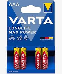 Varta LongLife Alkaline AAA Max Power 4 Pack Battery Varta Long Life Max Power Battery - AAA, 4 Pack, LR03 Battery Size, Alkaline, 1.5V, No Warranty Availability: In stock SKU: 6009715640109 R21,28 Qty: Add to cart Ship to Select country South Africa * Other * Shipping Method Name Estimated Delivery Price No shipping options Apply Custom wishlist OK Add to wishlist Add to compare list Email a friend Varta Long Life Max Power Battery - AAA, 4 Pack, LR03 Battery Size, Alkaline, 1.5V, No Warranty