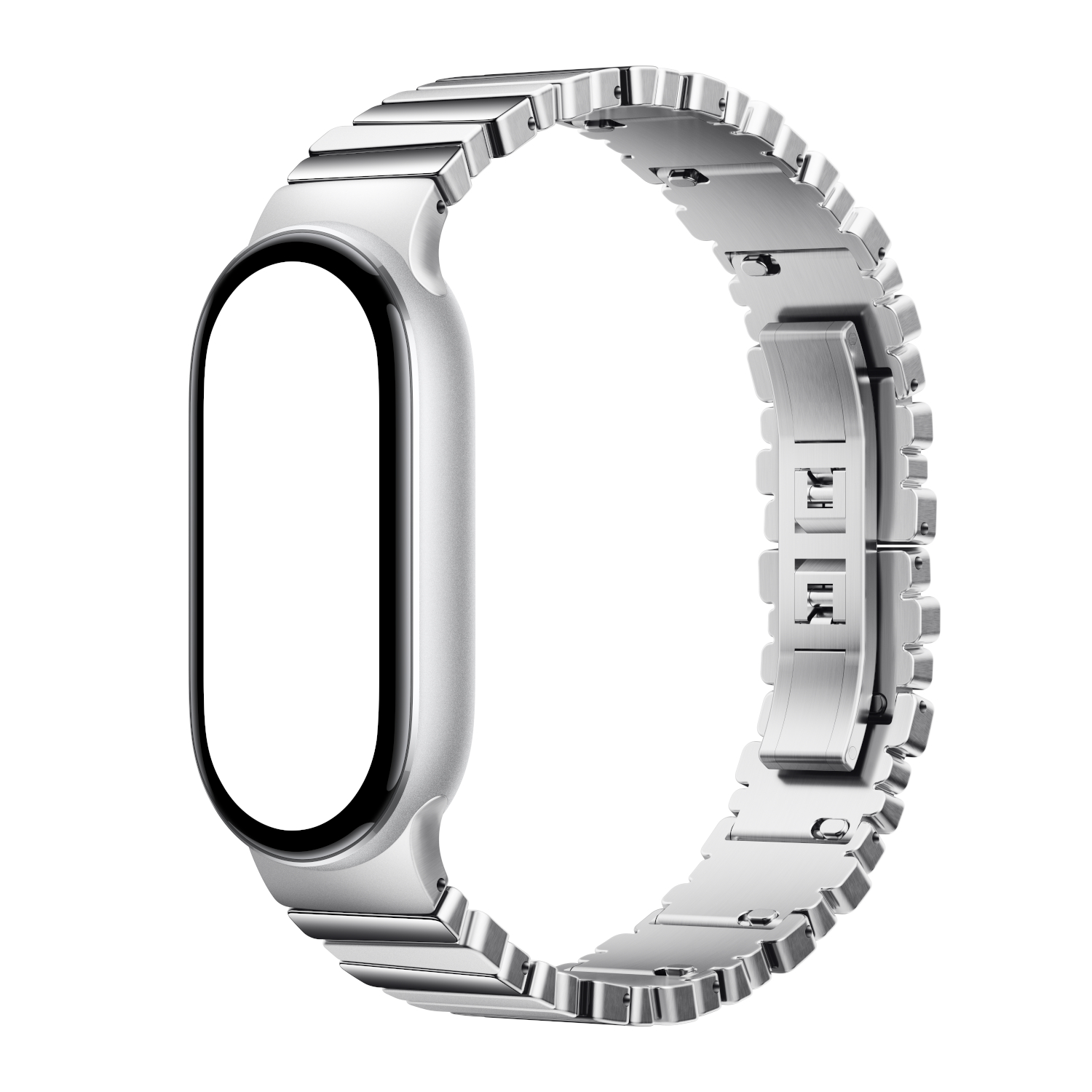 - Elevate your style with a sleek, silver metal Xiaomi Smart Band 10 strap.